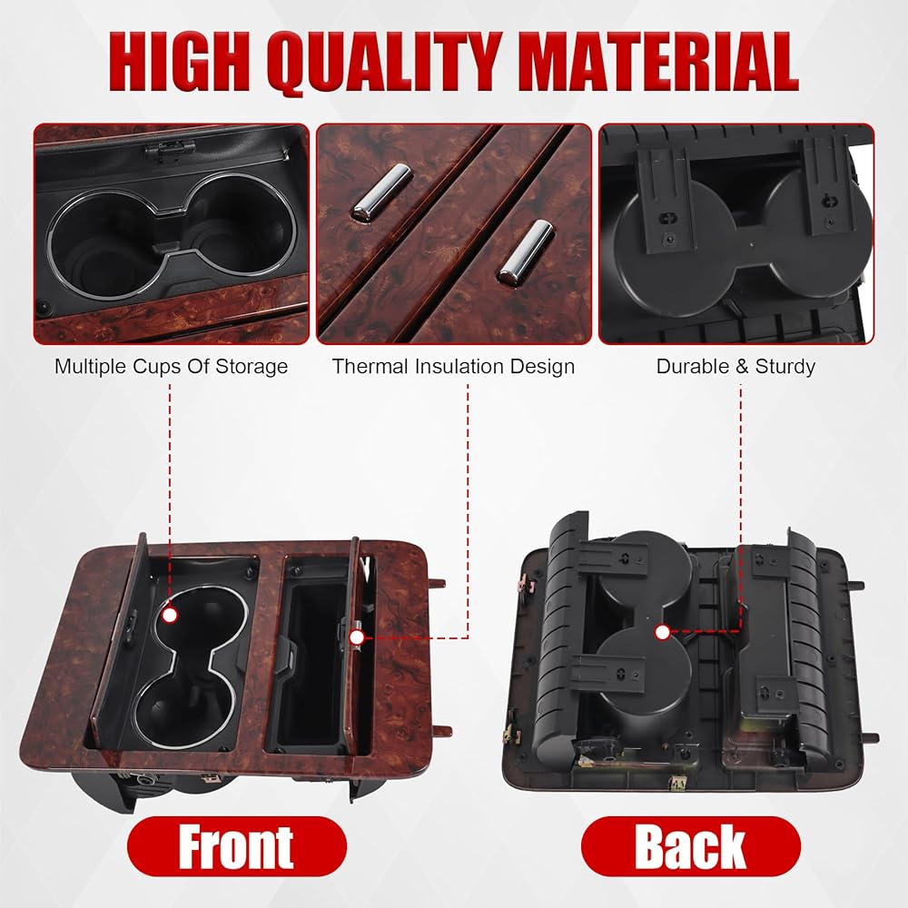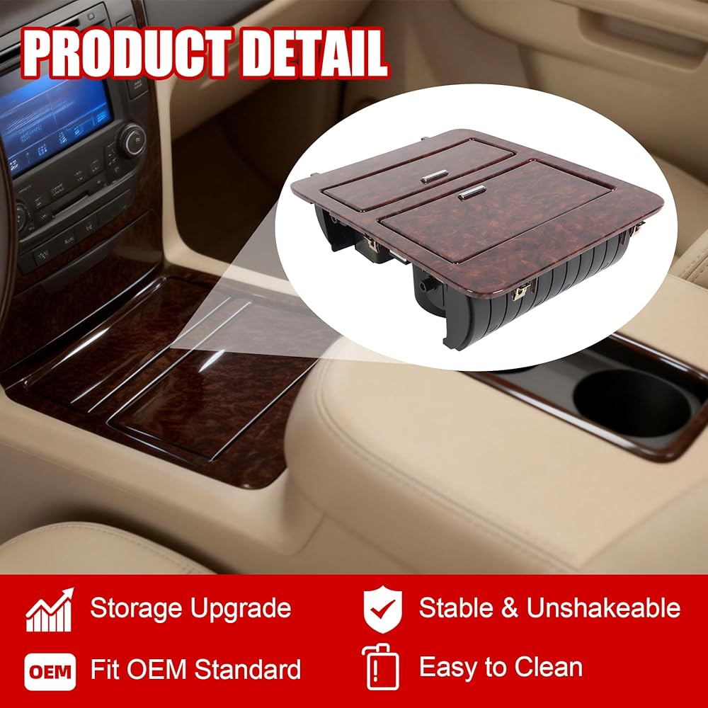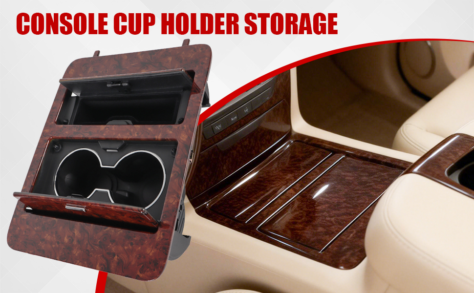 Woodgrain Center Console Cup Holder Storage Compatible with 2007-2014 Chevy Silverado/GMC Sierra/Cadillac Escalade Full Size GM Trucks Replaces for 23164631