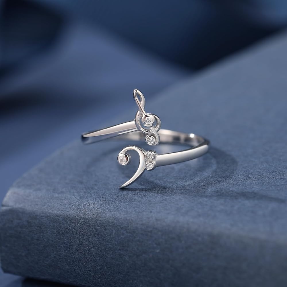Treble and bass clef ring for music lovers.This is small and cute music note ring with cz, made of genuine sterling silver.