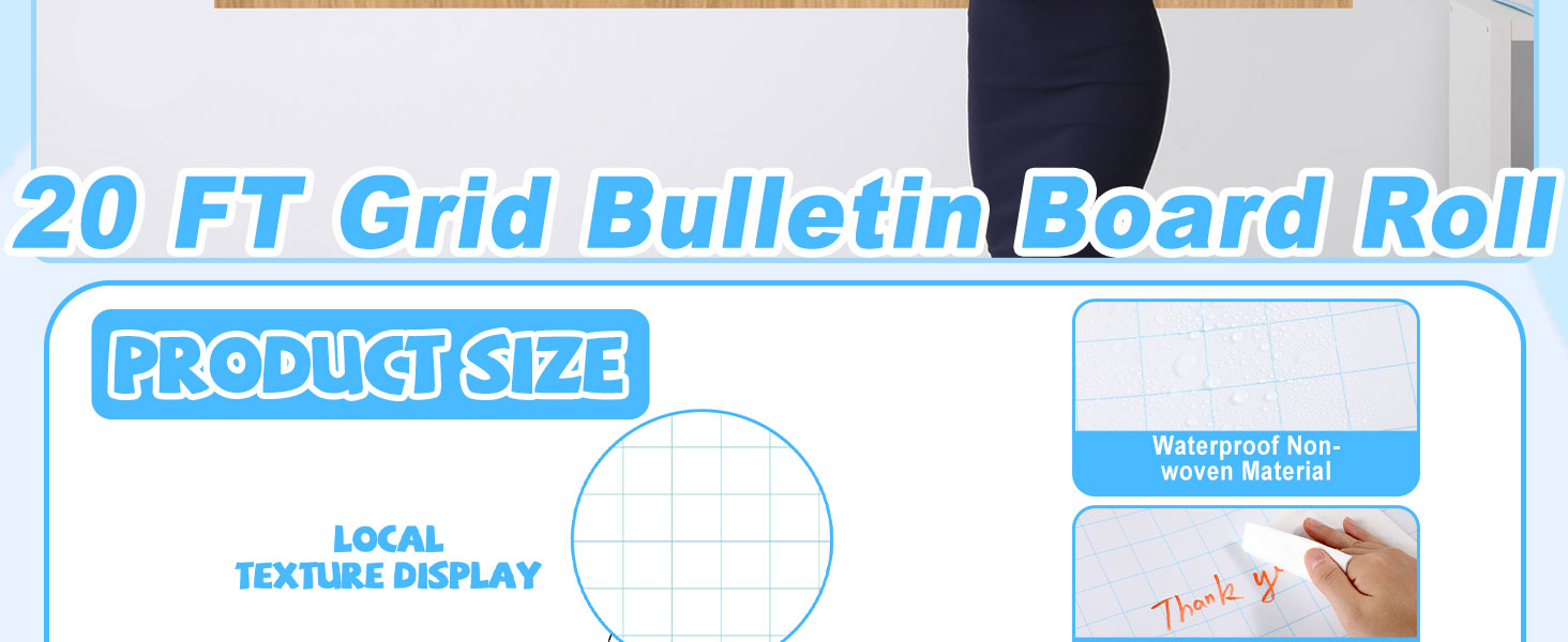 Product Size: The blue grid bulletin board background measures about 15.75 in x 20 ft, providing sufficient space to cover blackboard, bulletin boards and decorations, you can easily trim the paper to fit the dimensions of other items.