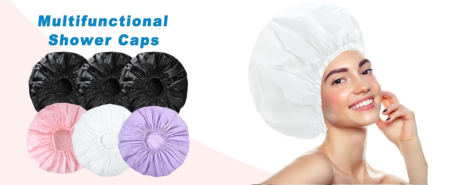 WATERPROOF JUMBO SHOWER CAPS - Made from premium water-resistant and skin-friendly PEVA materials, our reusable waterproof shower cap can effectively keep your hair from getting wet during showers or baths. Upgrade your shower experience.