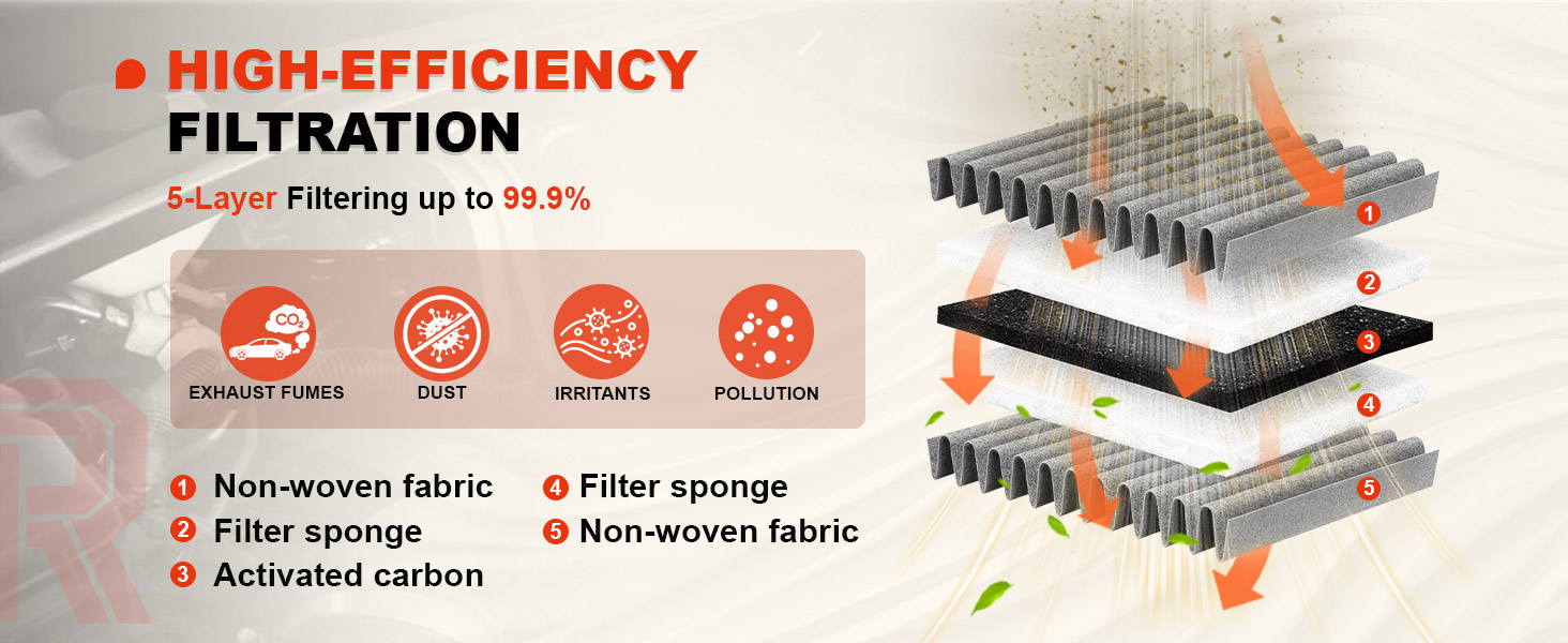 Breathe Easier: Our unique activated carbon filter goes beyond standard single-layer designs. It traps and reduces odors, pollen, and road dust, helping you maintain a fresher, cleaner cabin in your Pilot or Passport