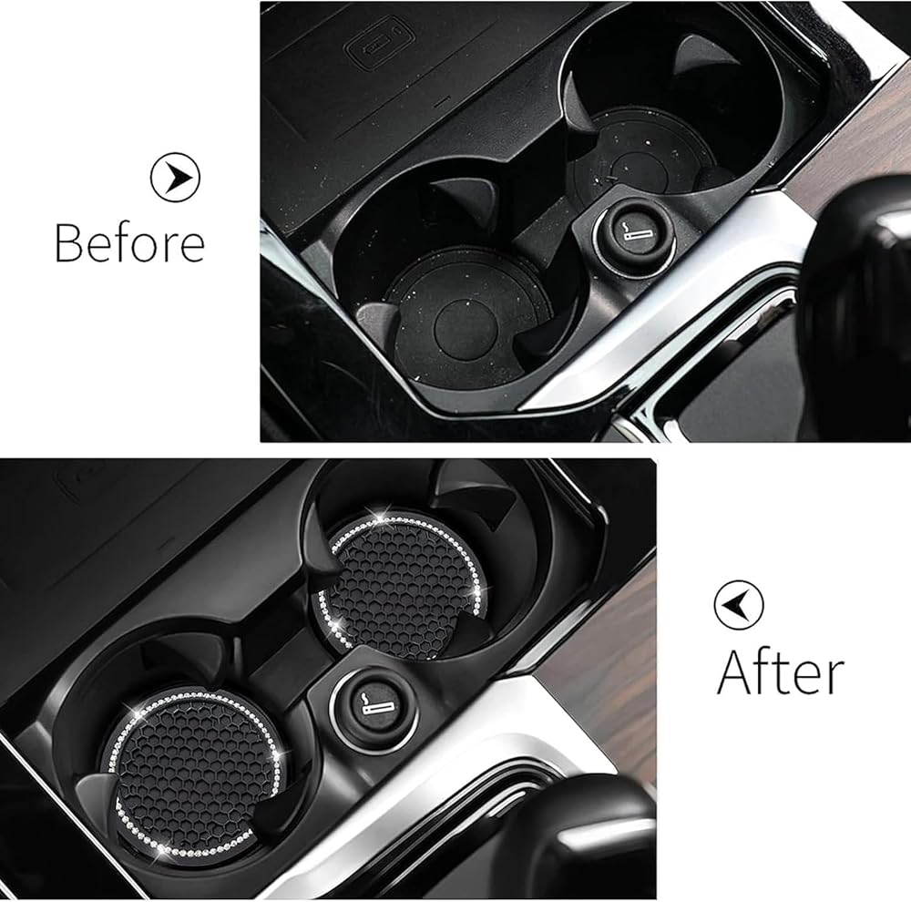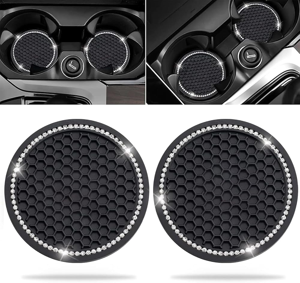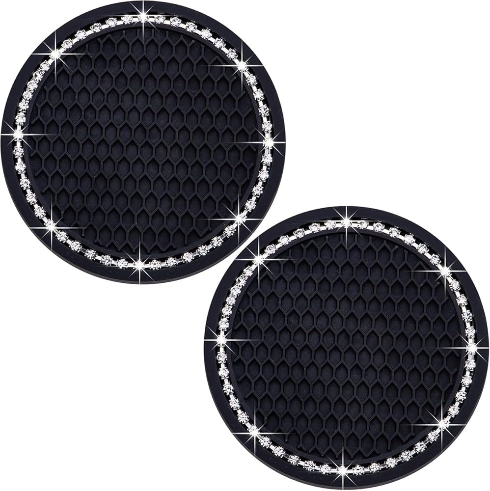 Add a touch of elegance to your vehicle with these universal cup holder inserts. Crafted from premium quality 5mm thick silicone, these coasters are durable and can withstand high temperatures. The eye-catching crystal rhinestone design creates a glamorous bling effect, making them a stylish addition to your car's interior. Measuring 2.75 inches, these coasters provide a secure and slip-resistant surface for your drinks, preventing spills and stains. Whether you're looking to enhance your car's aesthetics or protect your cup holders, these versatile inserts offer the perfect combination of functionality and style. Surprise your loved ones or treat yourself to a luxurious driving experience with these universal cup holder inserts.