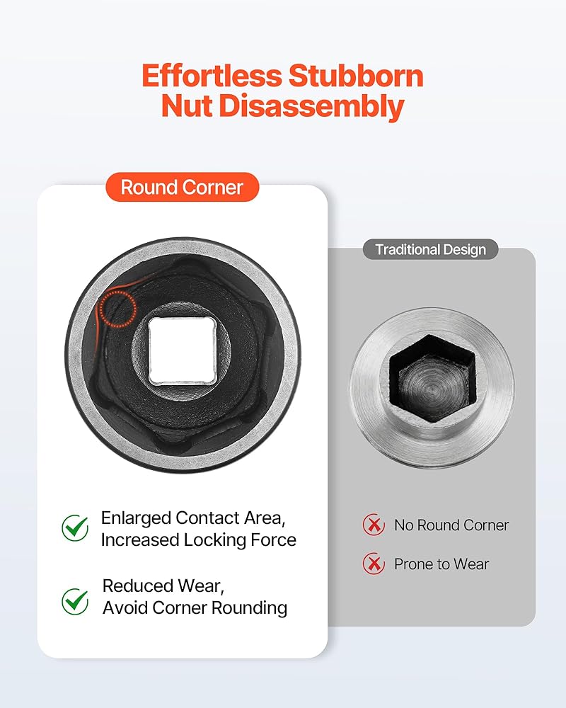 Enhanced Repair Efficiency: The 6-point socket design increases contact area with fasteners for a stronger grip. This reduces wear, avoids rounding of corners, and ensures bolts stay locked in place—even when using high-torque impact wrenches