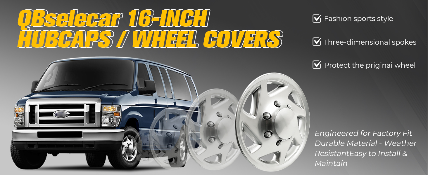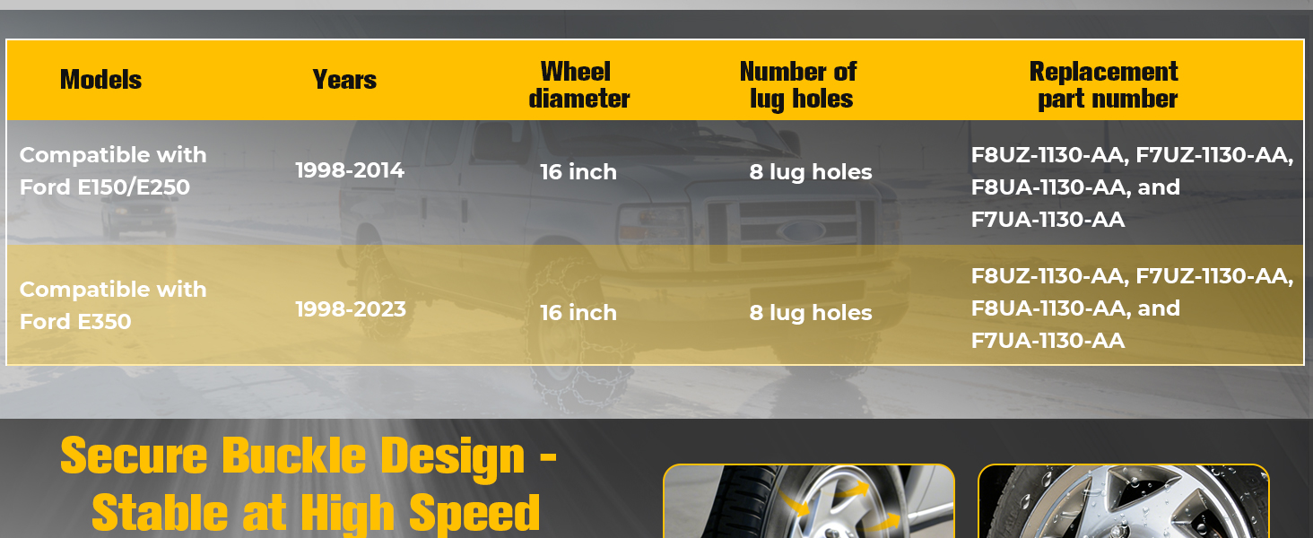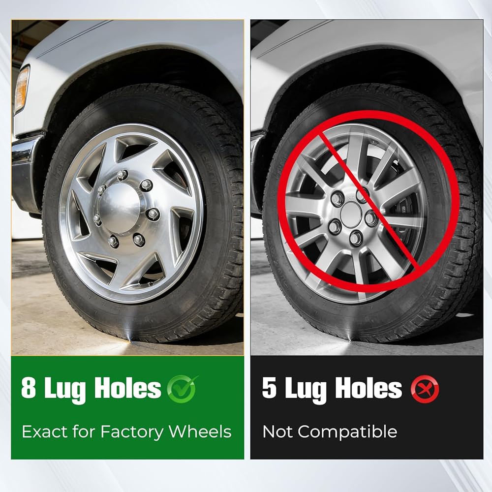 Precise Vehicle & Wheel Fitment:Tailored for Compatible with Ford Econoline Van models: E-150 (1998-2014), E-250 (1998-2014), and E-350 (1998-2023). Designed exclusively for 16-inch original factory wheels with 8 lug holes – not suitable for 5 lug wheels (please verify your wheel's lug count before ordering).