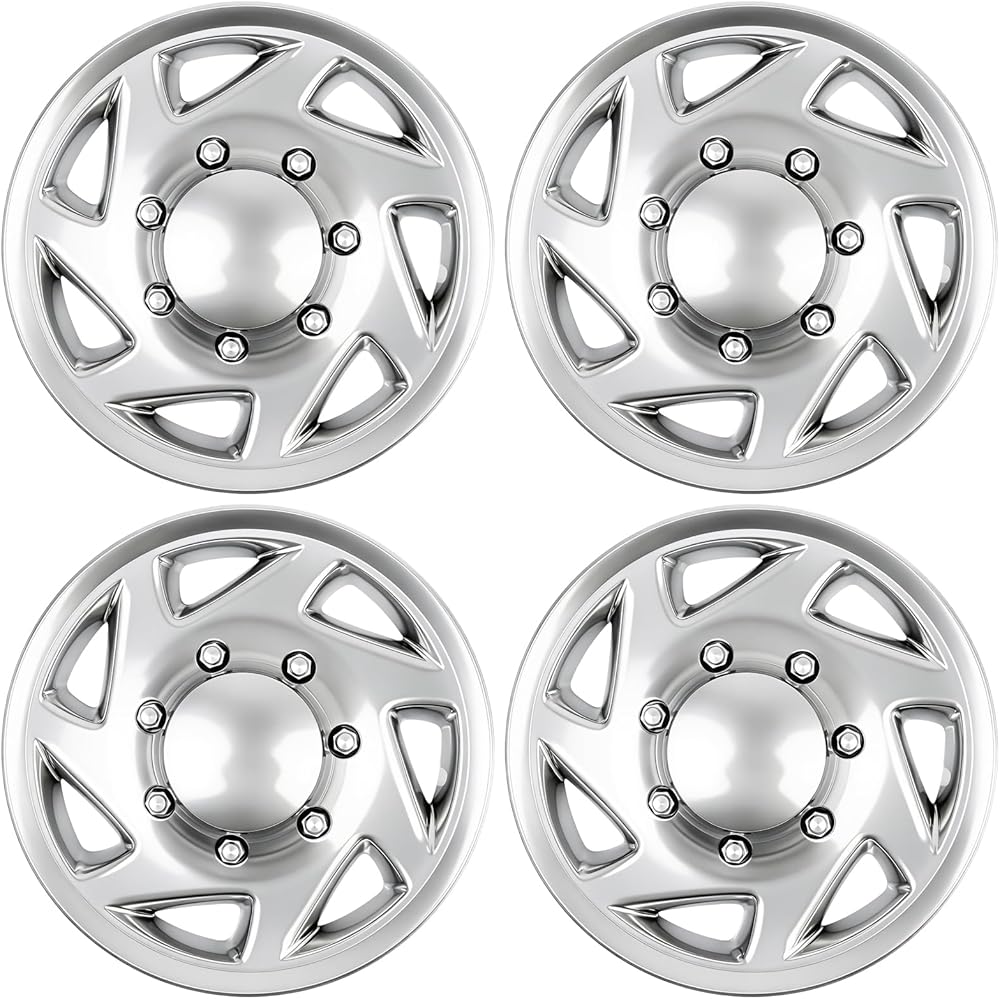 تركيب دقيق للمركبة والعجلات: مصمم ليتوافق مع موديلات Ford Econoline Van: E-150 (1998-2014)، E-250 (1998-2014)، وE-350 (1998-2023). مصممة حصريًا لعجلات المصنع الأصلية مقاس 16 بوصة مع 8 فتحات عروة - غير مناسبة لعجلات العروة الخمسة (يرجى التحقق من عدد عروة العجلة قبل الطلب).