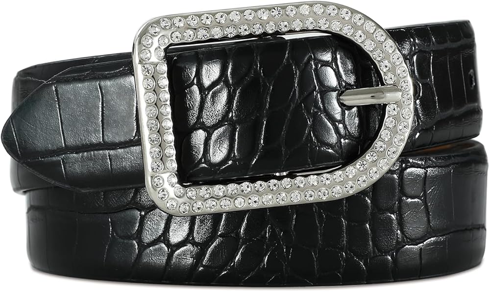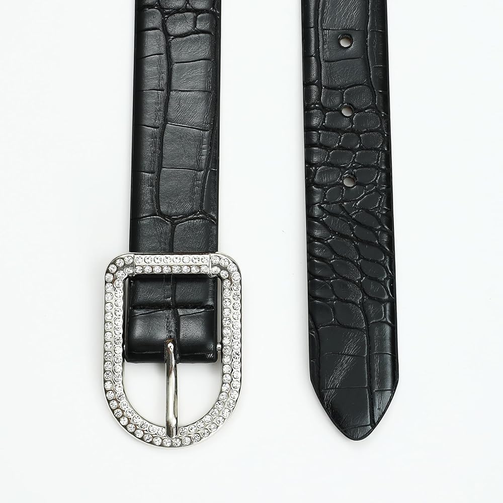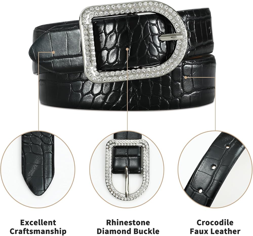 【Fashion Black Belts】 Combining the elegance of crocodile texture with a dazzling rhinestone buckle, this fashion black belt is ideal for those who want to make a statement.