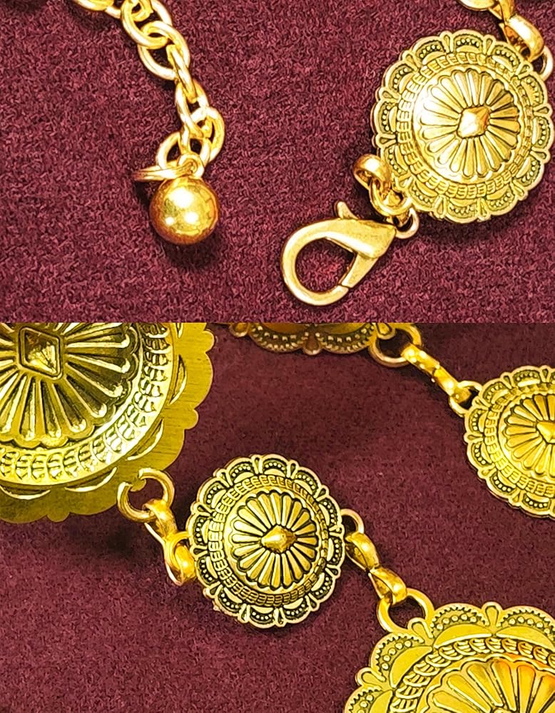 Metal Material: Crafted from quality alloy, this gold-tone belt is sturdy yet lightweight. The polished finish and durable plating help maintain its shine, ensuring long-lasting wear as a daily or special occasion accessory