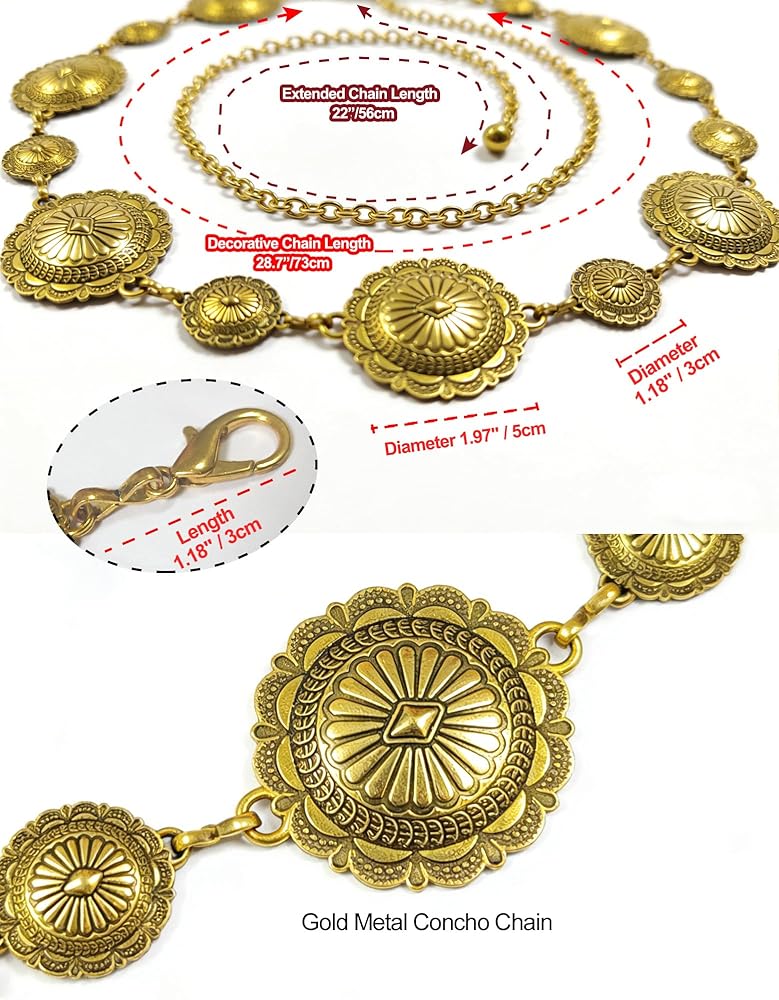 Adjustable & Flattering Fit: This western belt features a 31.5-inch main chain with a 19.7-inch extender, offering a customizable fit. It's a versatile cowgirl belt or waist chain for various body types, perfect as a belt for jeans or dresses