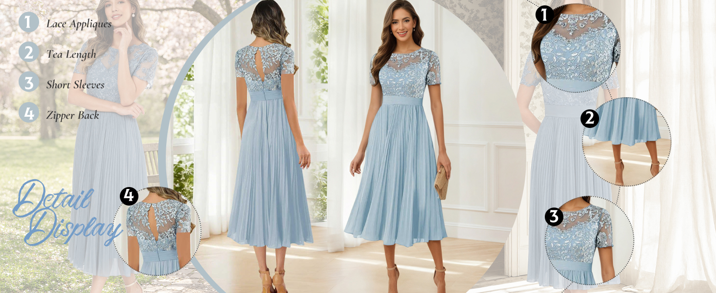 Features:Tea Length Mother of The Bride/Groom Dresses for Women,Lace Appliques Grandmother of The Bride/Groom Dress with Short Sleeves,Ruched Prom Dress 2026 Cocktail Party Dresses for Women Elegant Classy, Midi Formal Evening Gowns for Wedding Guest