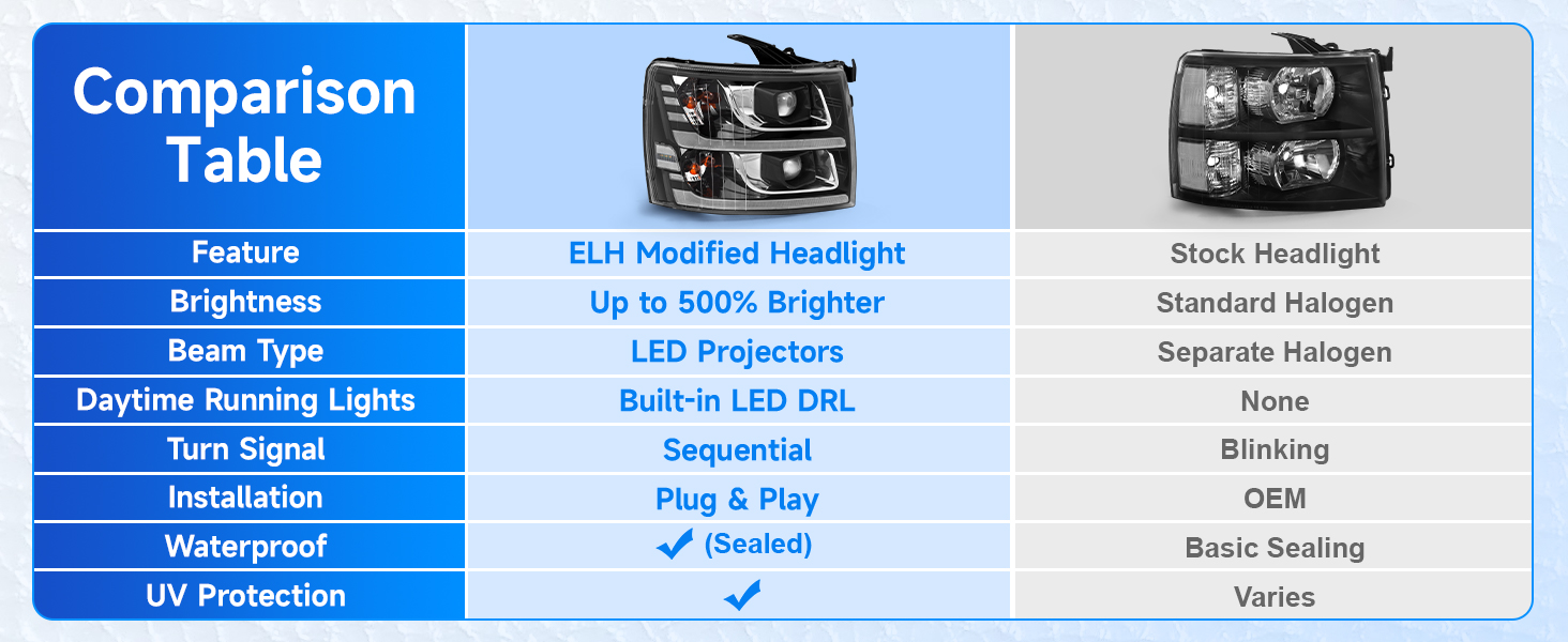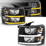 ELH LED Projector Sequential LED DRL Headlight Assembly Fit For 2007-2013 Chevy Silverado 1500 / 2500HD / 3500HD & 2014 Old Body Style((Black Housing Clear Relfector, LED Projector)