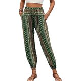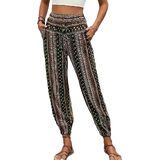 Features: High waist, full elastic waistband pull on style, boho floral design, bottom leg tightening long pants.