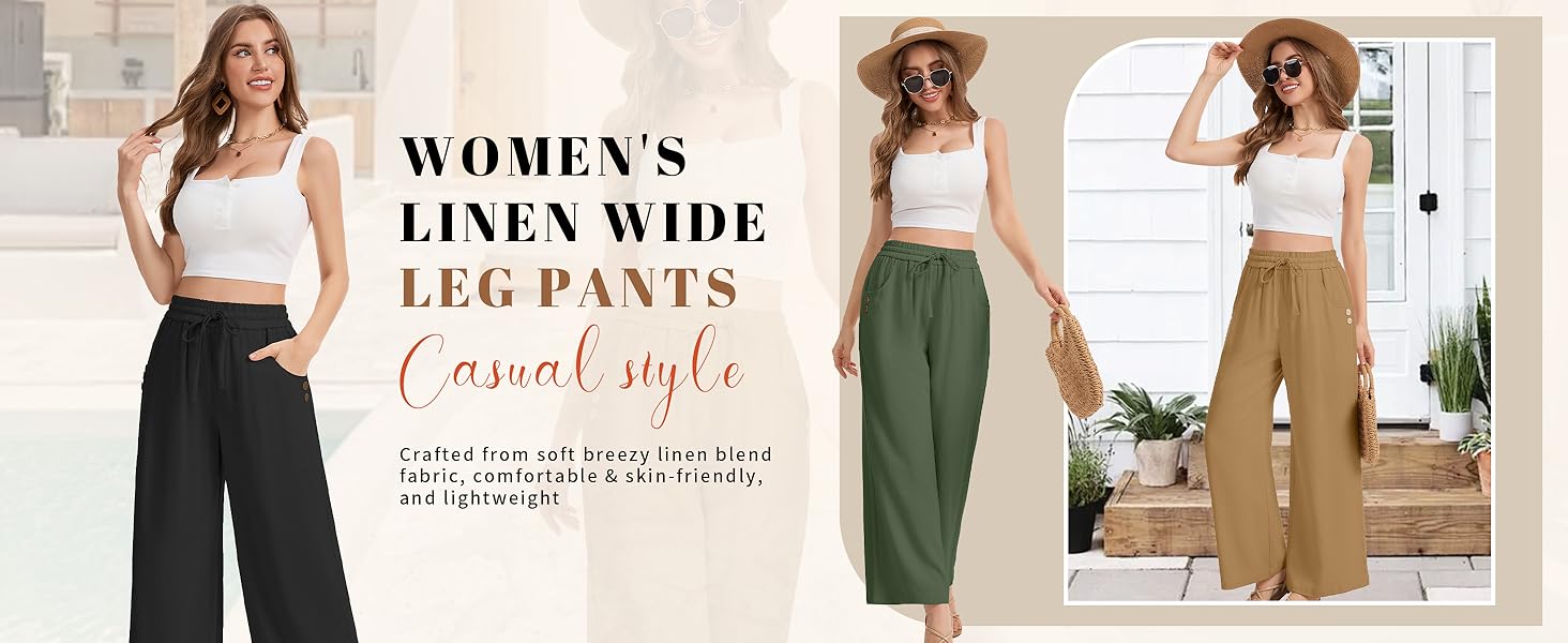 FEATURE -- Women's Linen Casual Pants, Crafted from soft breezy linen blend fabric, comfortable & skin-friendly, and lightweight