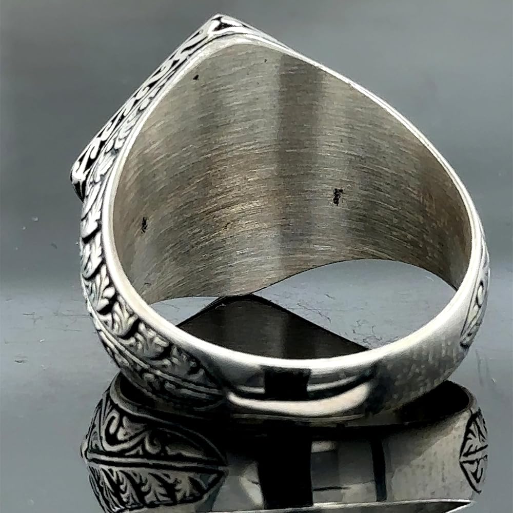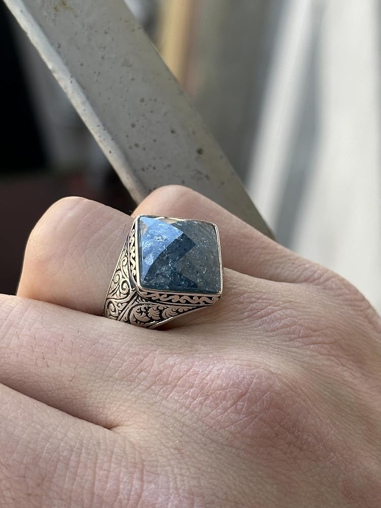 Introducing our distinguished Men's Natural Sapphire Stone Ring – a testament to the exquisite craftsmanship of Turkish and Ottoman design. Meticulously handmade, this sterling silver ring is not just an accessory; it's a symbol of sophistication, cultural heritage, and an extraordinary gift for the discerning gentleman. Carefully designed with precision and care, the ring features a captivating natural sapphire stone, its deep blue hue signifying wisdom and nobility. The square shape adds a touch of modernity, while the intricate engraving, inspired by Ottoman aesthetics, creates a unique fusion of tradition and contemporary flair.