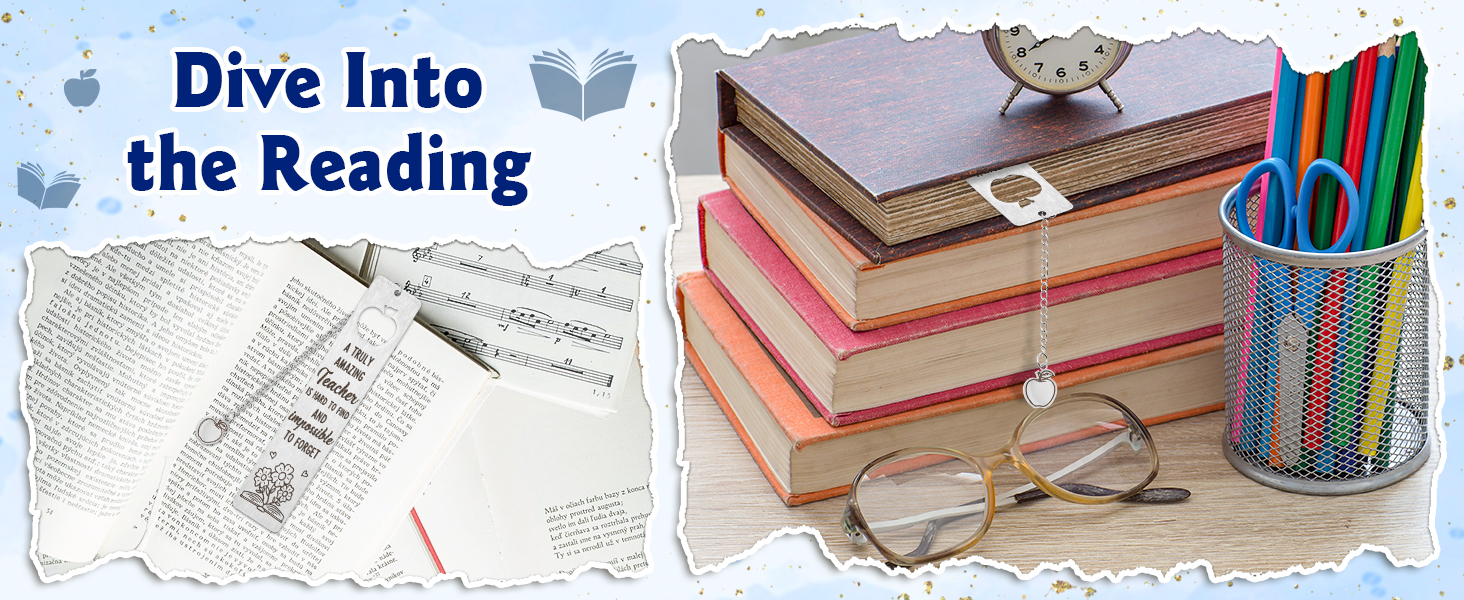 PACKAGE INCLUDES: The package includes 1pcs stainless steel hollow bookmark, the top of the bookmark is hollowed out in the shape of an apple pattern, it is packed in a light blue box