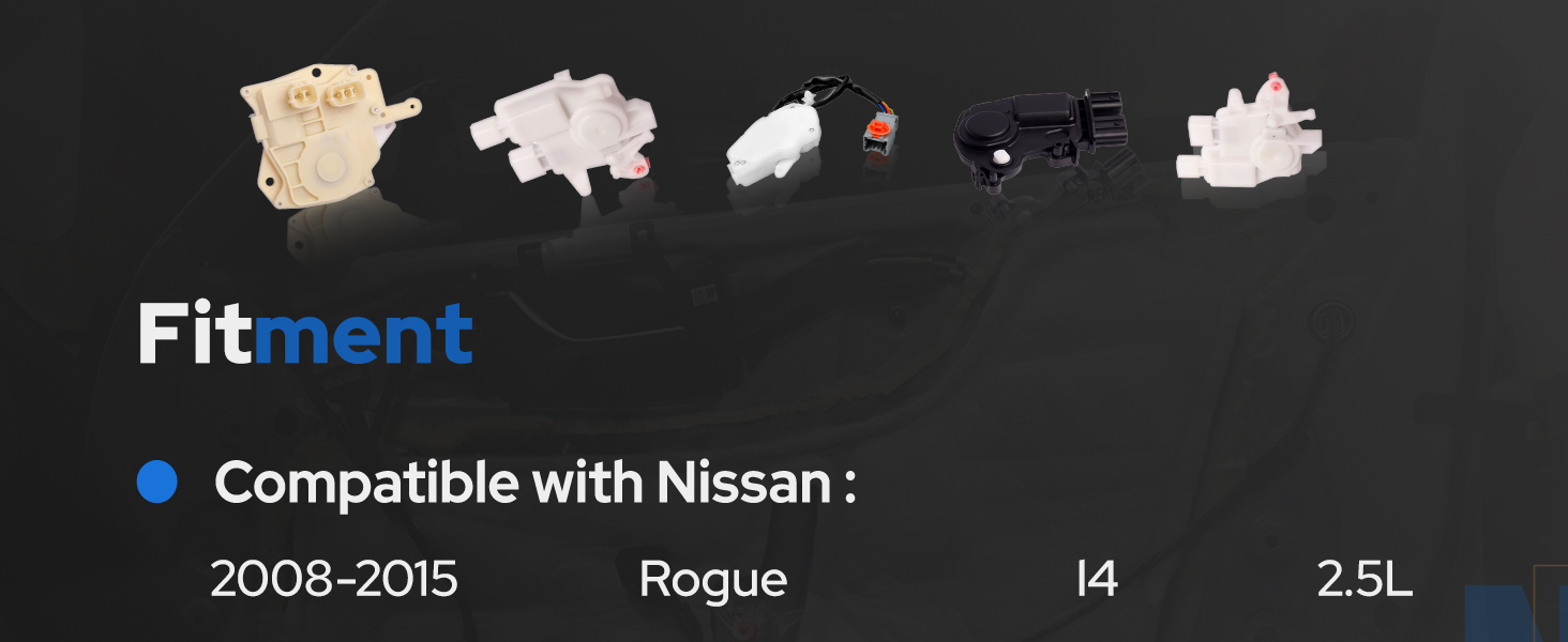 The ENA Lock Actuator is engineered for precise direct-fit replacement and is compatible with 08 09 10 11 12 13 14 15 Rogue Select with 2.5 L4 Engines