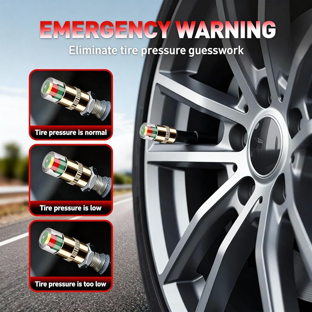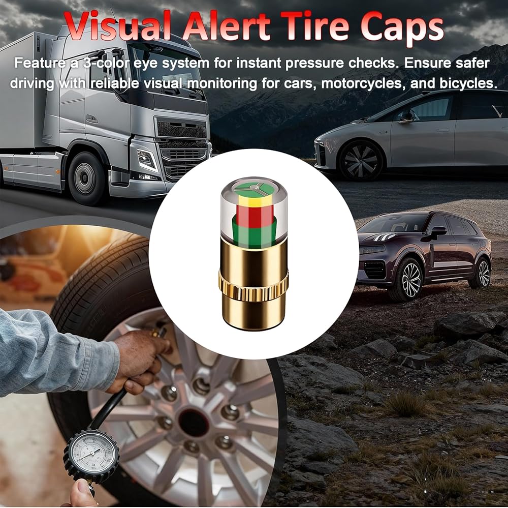 Wide Compatibility and Application Range: Suitable for various vehicles including cars, motorcycles, and bicycles, these tire pressure monitor caps cater to any vehicle owner seeking to keep their tires properly inflated. Ideal for drivers who prioritize tire and performance, the tire valve caps offer reliable pressure monitoring for everyday use.