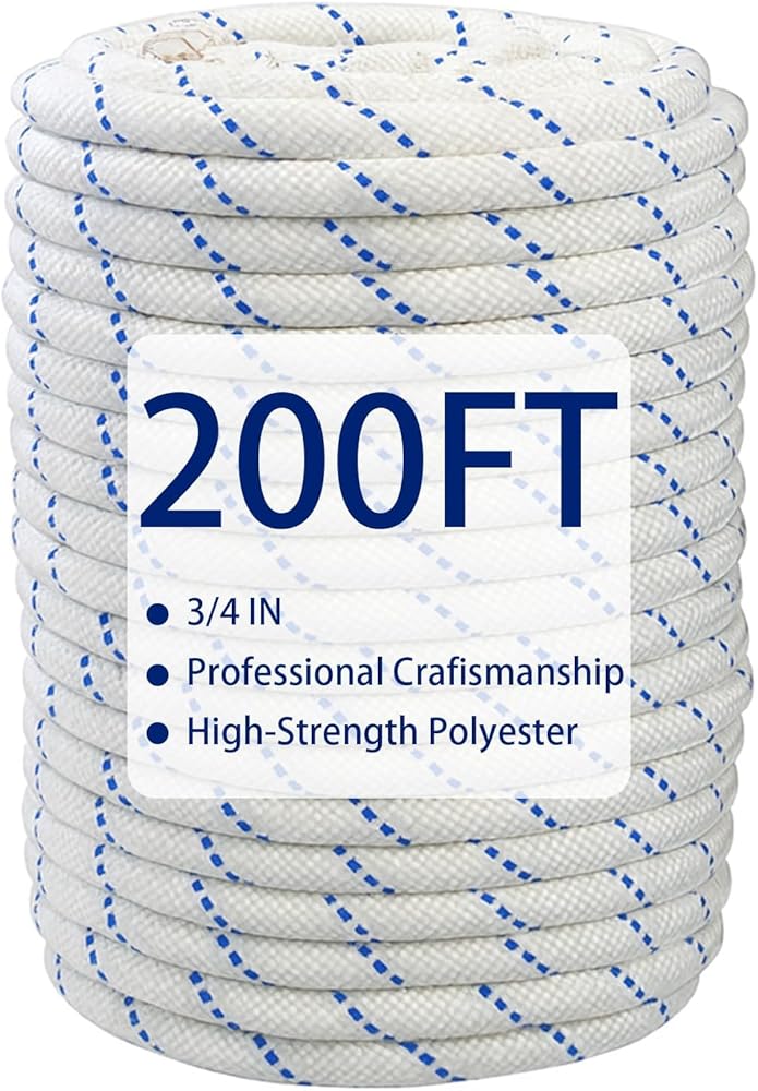 Technical Specifications:This professional-grade arborist rope measures 3/4" diameter x 200ft length with an exceptional 20,000 lbs tensile strength for demanding rigging applications.