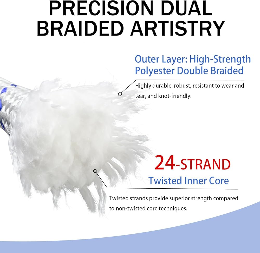 3/4" x 200' High Force Braid Polyester Rope, 24 Strand Bull Rope Up to 20000Lbs Tensile Strength, Heavy Duty Tree Rope, Ideal for Tree Work, Camping and Swings, Blue and White