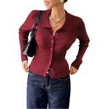 Designs: Featuring a timeless polo - collar and a button - front closure, this cardigan combines classic charm with modern trends. The ribbed texture adds a touch of sophistication, while the cropped length gives it a trendy edge, making it a perfect piece for fall outfits for women