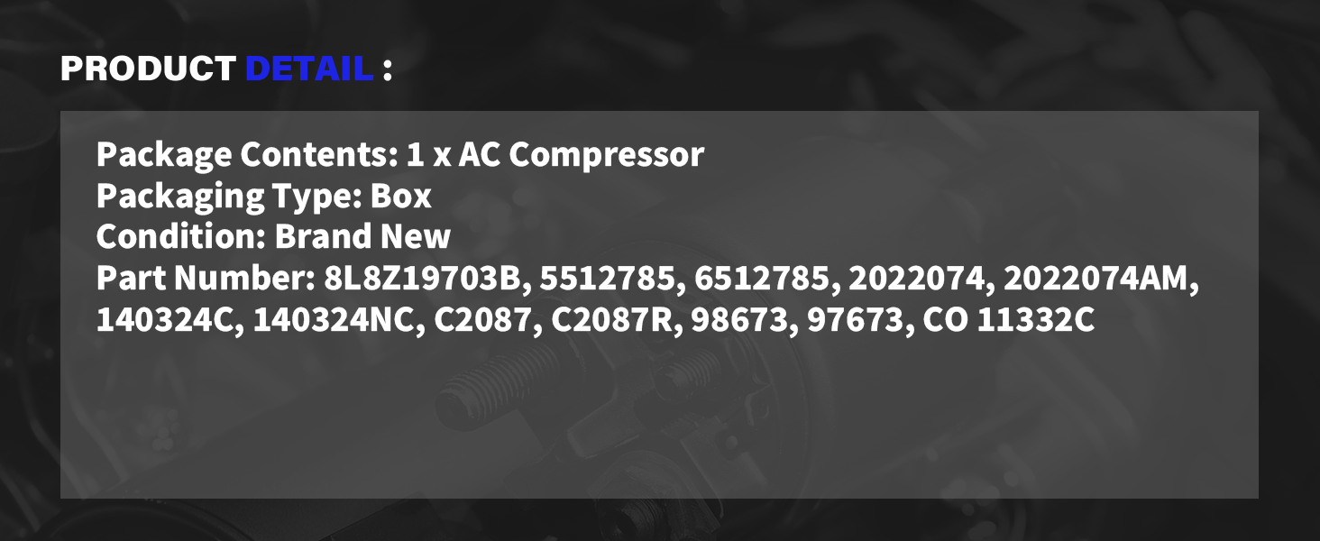 A/C Air Conditioner Compressor with Clutch Replacement for Ford Escape 2008-2012 for Mazda Tribute 2008-2011 for Mercury Mariner 2008-2011 CO 11332C 6512785