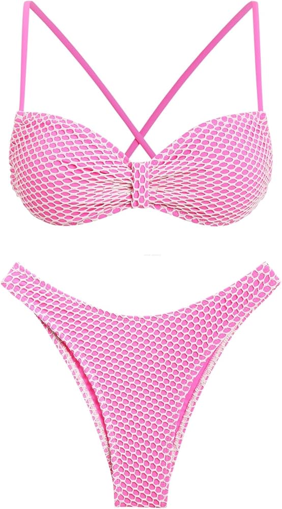Gingham Bowknot Criss-Cross Bikini Set: Seamoly's cheeky bikini blends vibrant gingham with playful details: a bowknot, criss-cross straps, and adjustable ties. Wire-free with removable padded cups and lined for comfort, the high-stretch fabric flatters curves. Perfect for sunlit beach days or poolside chic!
