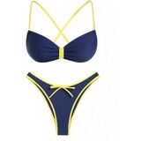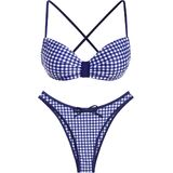 Edgy Gingham Criss-Cross Swimwear: Seamoly's bikini dazzles with gingham patterns, criss-cross ties, and a bowknot charm. The wire-free design and removable padding prioritize comfort, while high-stretch fabric hugs your silhouette. Lined for confidence—ideal for adventurous sun-soaked escapes!
