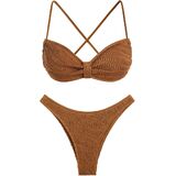 Tie-Front Gingham Cheeky Bikini: Turn heads in Seamoly's gingham set! Criss-cross spaghetti straps, a flirty bowknot, and a tie-front design add bold texture. Removable pads and stretchy polyester-spandex ensure support, while the cheeky cut exudes confidence. Summer's ultimate statement-maker!