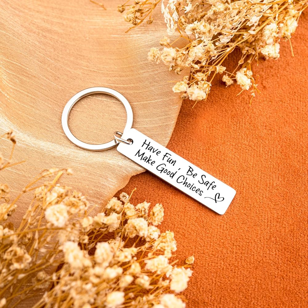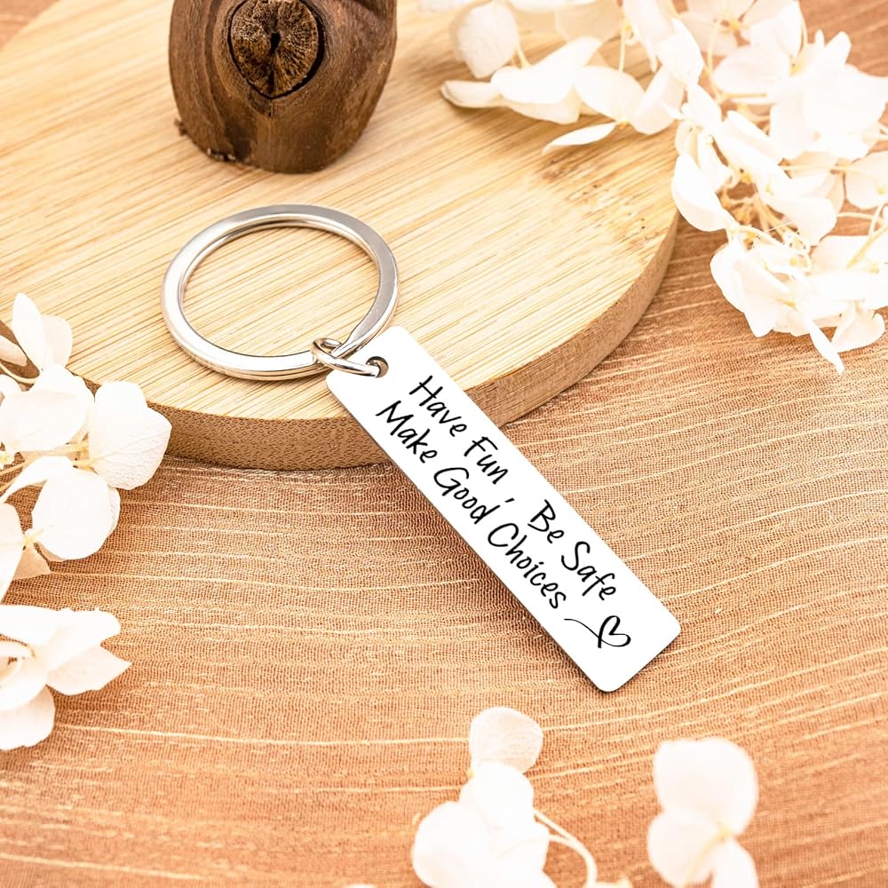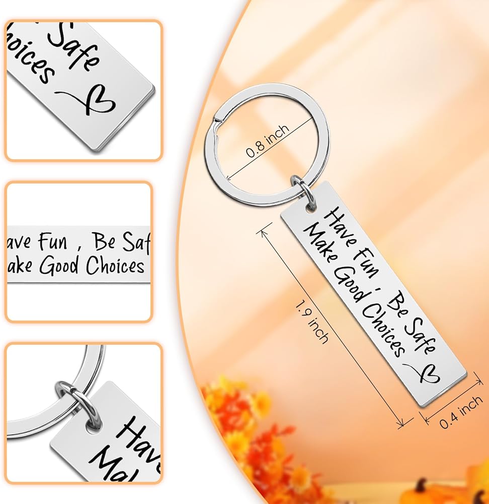 Offer a Practical And Heartfelt Token Of Care With Our "Have Fun, Be Safe, Make Good Choices" Drive Safe Keychain. More Than Just a Key Ring, This Personalized Keychain Carries a Powerful, Triple-Layered Message That Resonates With Drivers Of All Ages: Encouraging Enjoyment, Reminding Of Safety, And Inspiring Wise Decisions. Its Engraved Mantra Serves As a Constant, Subtle Nudge Towards Responsible Driving Every Time They Reach For Their Keys.This Keychain Is An Exceptionally Thoughtful Choice For New Driver Gifts. Whether For a Teenager Freshly Licensed, a College Student With Their First Car, a Friend Embarking On a Road Trip, Or a Loved One Who Commutes Daily, It Expresses Your Care In a Tangible Way. It's Perfectly Suited For Milestone Occasions Like Driver's License Celebrations, Graduations, Birthdays, Christmas, Or Simply As a "Thinking Of You" Gift. Its Universal Message Makes It a Fitting Drive Safe Keychain For Him, a Supportive Gift For Her, Or a Cool And Meaningful Boys Keychain.Designed For Durability And Daily Use, This Safety Keychain Is Crafted From a Robust Metal Alloy With a Smooth, Glossy Finish That Resists Tarnishing. The Inspirational Phrase Is Permanently Laser-Engraved, Ensuring It Won't Fade, Rub Off, Or Wear Away Even With Frequent Handling. It's Built To Hold Keys Securely While Adding a Touch Of Meaningful Style To Any Keyring.A Versatile Accessory That Blends Function With Sentiment, It's One Of Those Unique Gifts For New Drivers That Goes Beyond The Ordinary. We Believe In Creating Products That Carry Positive Intentions. This Keychain Arrives Neatly Packaged In a Premium Gift Pouch, Ready To Be Presented With No Additional Wrapping Needed. Should You Have Any Questions About Our Personalized Key Chains Or Need Assistance Selecting The Perfect Token, Please Do Not Hesitate To Contact Our Friendly Customer Service For Support.