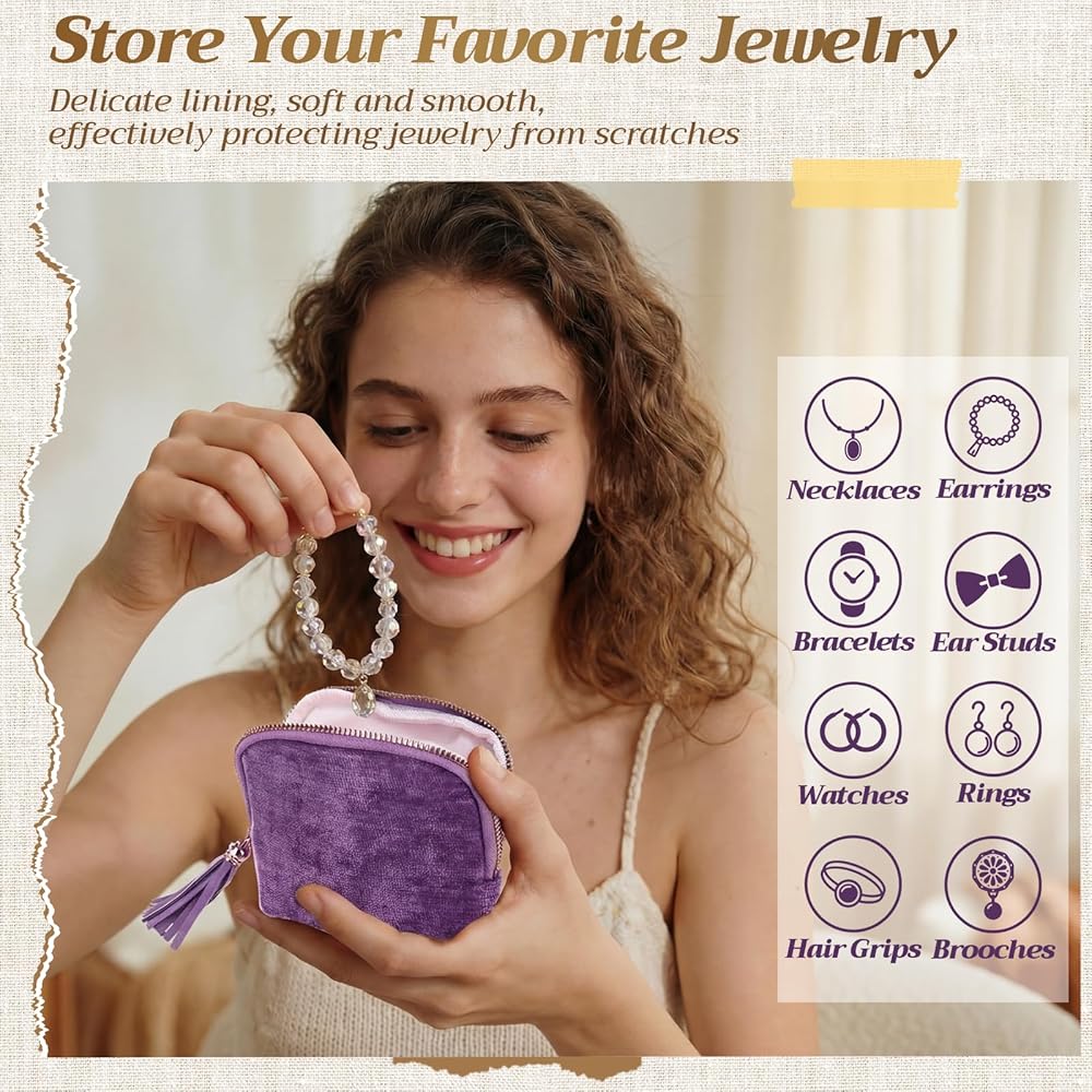 • Durable Materials & Smooth Zippers: the travel jewelry pouch features premium velvet & cotton-lined fabric-durable, scratch/tarnish-resistant, and paired with a smooth metal zipper and tassel decor for chic style; This compact, multi-functional organizer keeps jewelry safe on trips or daily commutes