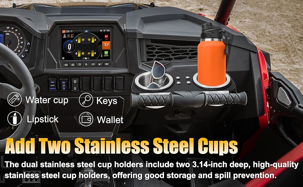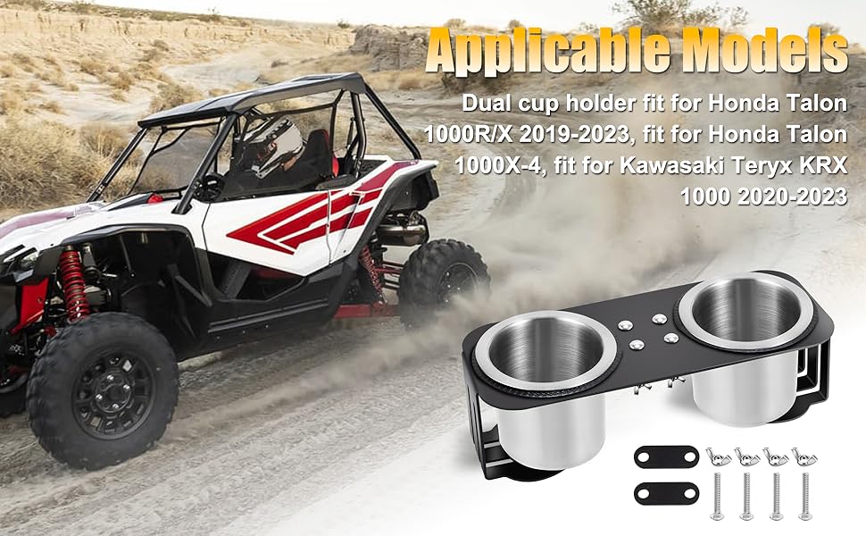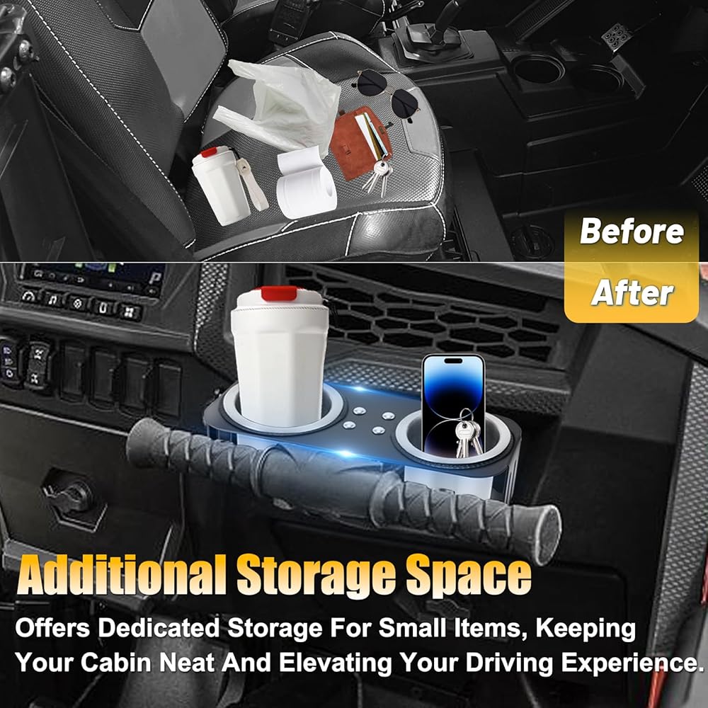 Applicable Models: This Grab bar dual cup holder for Honda Talon 1000R/X (2019-2023), for Honda Talon 1000X-4, and for Kawasaki Teryx KRX 1000 (2020-2023).for Polaris RZR XP 1000/XP Turbo/800/900 2008-2023,With dual storage space, it fits perfectly in your vehicle's passenger armrest, making it an ideal retrofit option