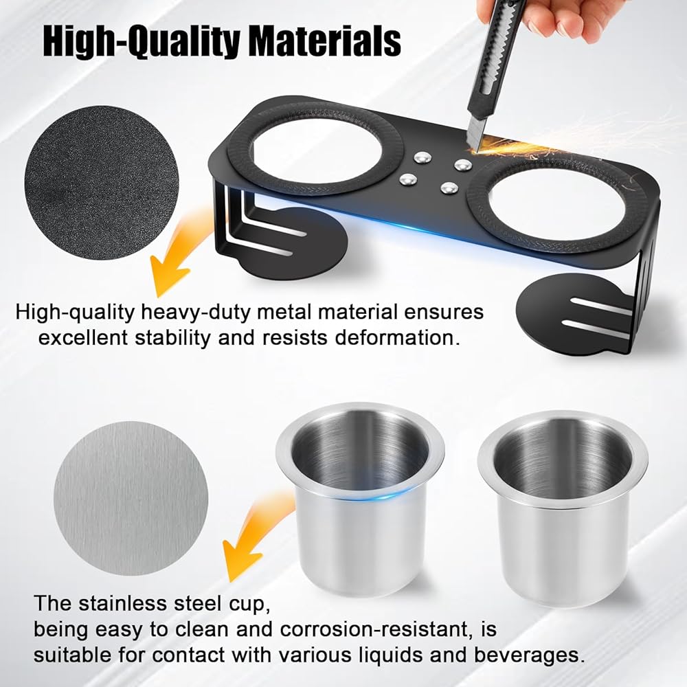 Add a Pair of Stainless Steel Cups: This Grab bar dual cup holder set includes a pair of 3.14-inch deep, high-quality Stainless steel cups, Serves as a cup holder Holds 20、30and 40 ounce water bottles. provides additional storage for your phone, wallet, keys, sunglasses, and more.