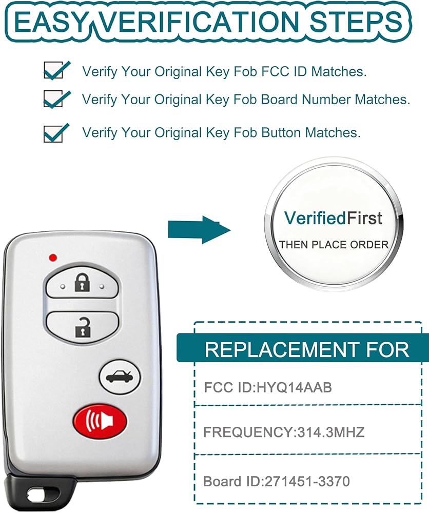 Smart Key Fob for Toyota Camry 2010-2012, FengRKey Remote Control Key Fob Compatible for Toyota Camry Avalon 2010-2012 HYQ14AAB 89904-06070 89904-06130 271451-3370
