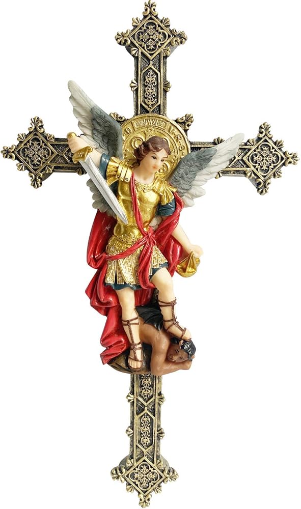 Annie's Boutique San Miguel Wall Mounted Resin Catholic Cross Wall St Michael Crucifix Home Decoration (12 Inches)