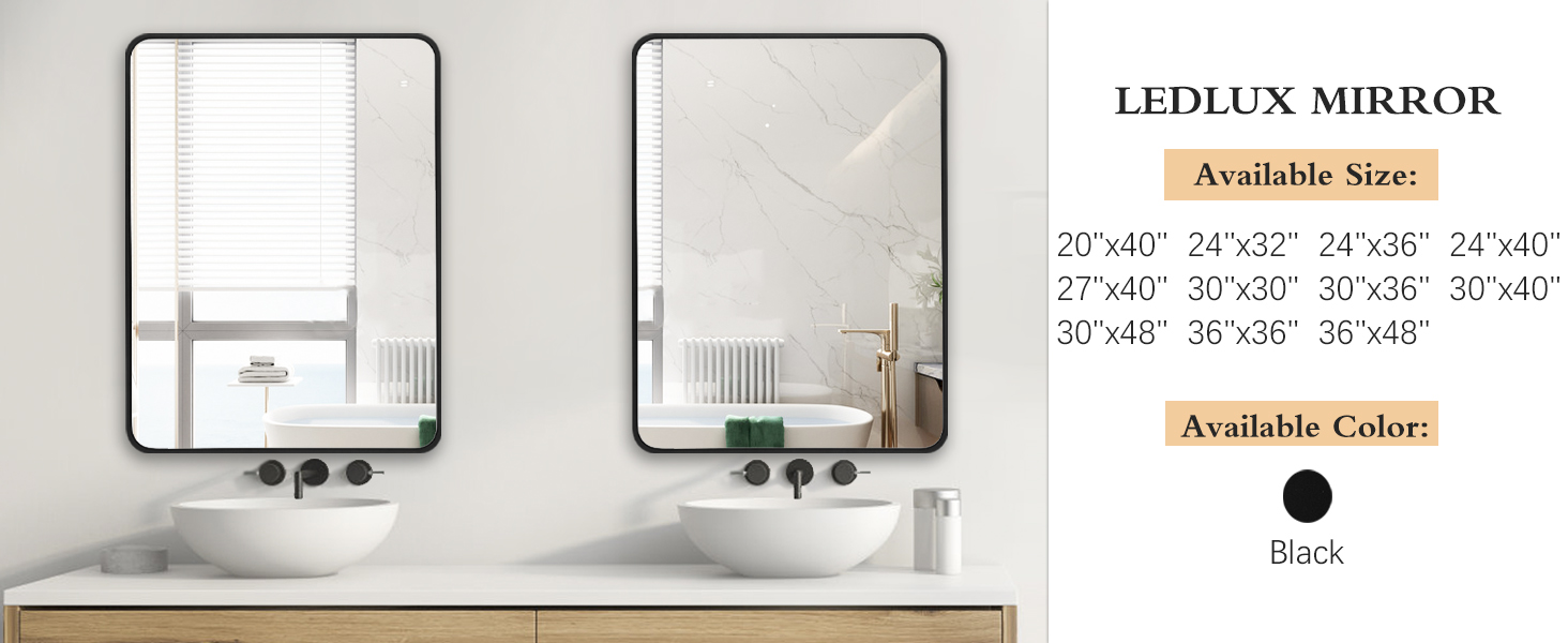 Large Sized Vanity Mirror - With total exterior dimensions of 30" x 30" x 0.9", the frame is in 0.9" thickness x 0.43" Width. Installation template is offered, no complicated assembly is involved. LEDLUX also offers multi-dimension for your needs.