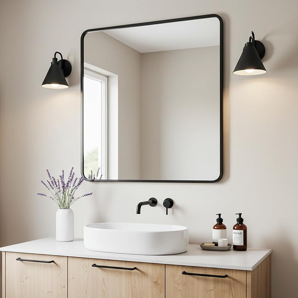 27x40 Inch Matte Black Bathroom Mirror - Copper-Free Mirror, Metal Frame Vanity Rectangle Wall Mounted Modern Mirrors for Bedroom/Living Room/Porch Horizontal or Vertical
