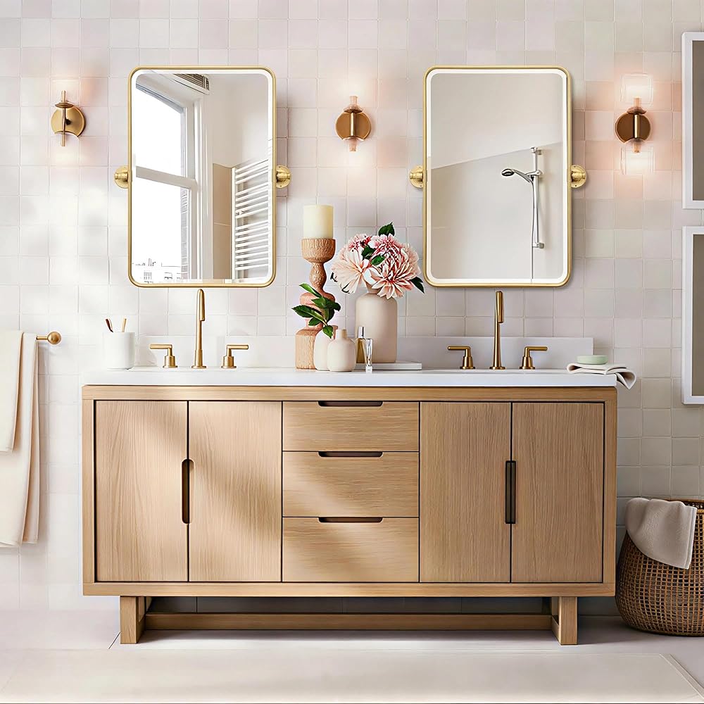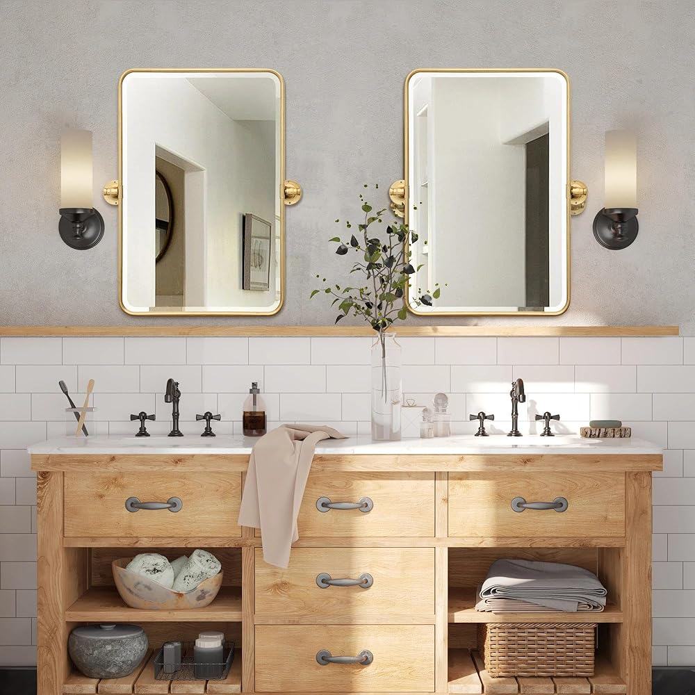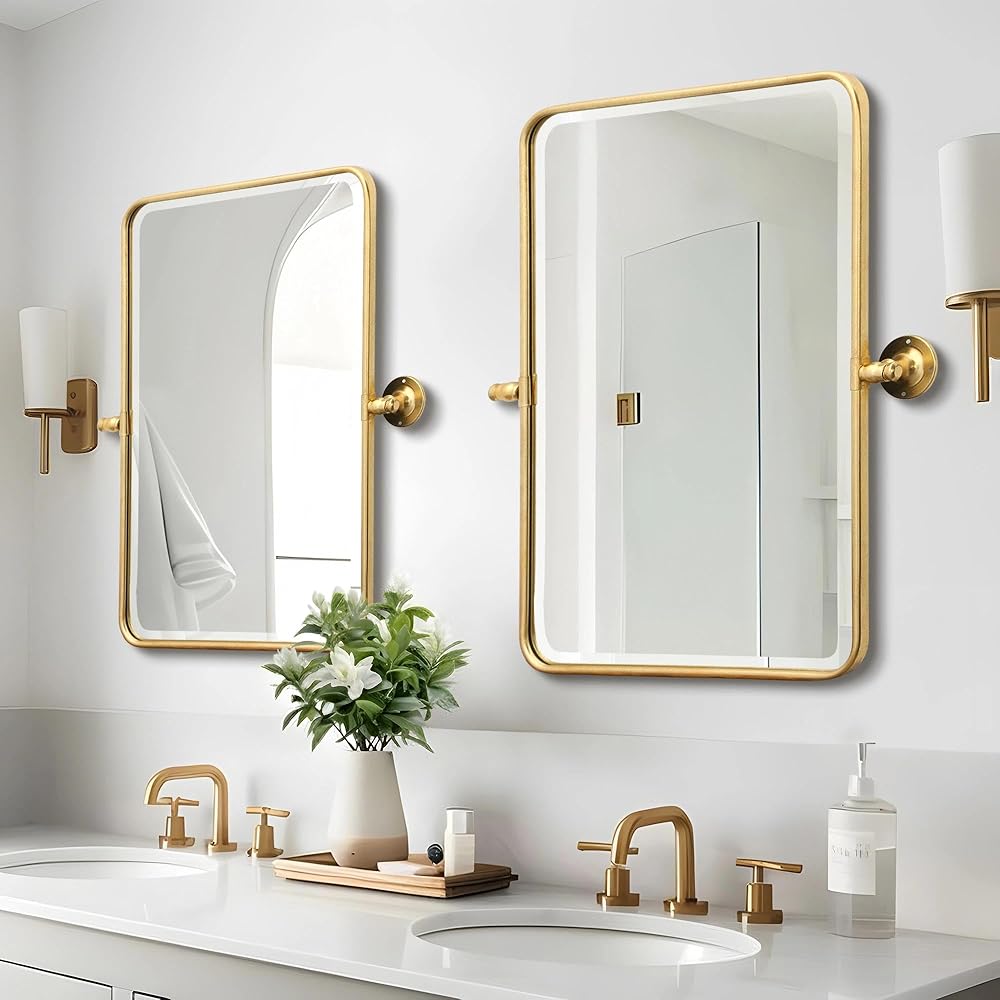 Elegant Aesthetic Design: Ideal for fashion-conscious women, gold Leafing pivot mirror enhances your space with its timeless charm. Available in various colors and sizes, this tilt mirror seamlessly fits bathrooms, living rooms, bedrooms and entryways, complementing styles like minimalist, modern farmhouse, industrial and commercial aesthetics.
