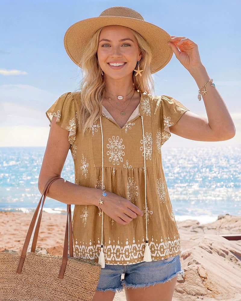 Premium Comfort Fabric: Boho tops for women - Crafted from lightweight, breathable fabric that feels soft against skin. Wrinkle-resistant & quick-dry fabric holds its shape wash after wash, keeping you comfort and stylish all day. Perfect for all-day wear in Spring and Summer.