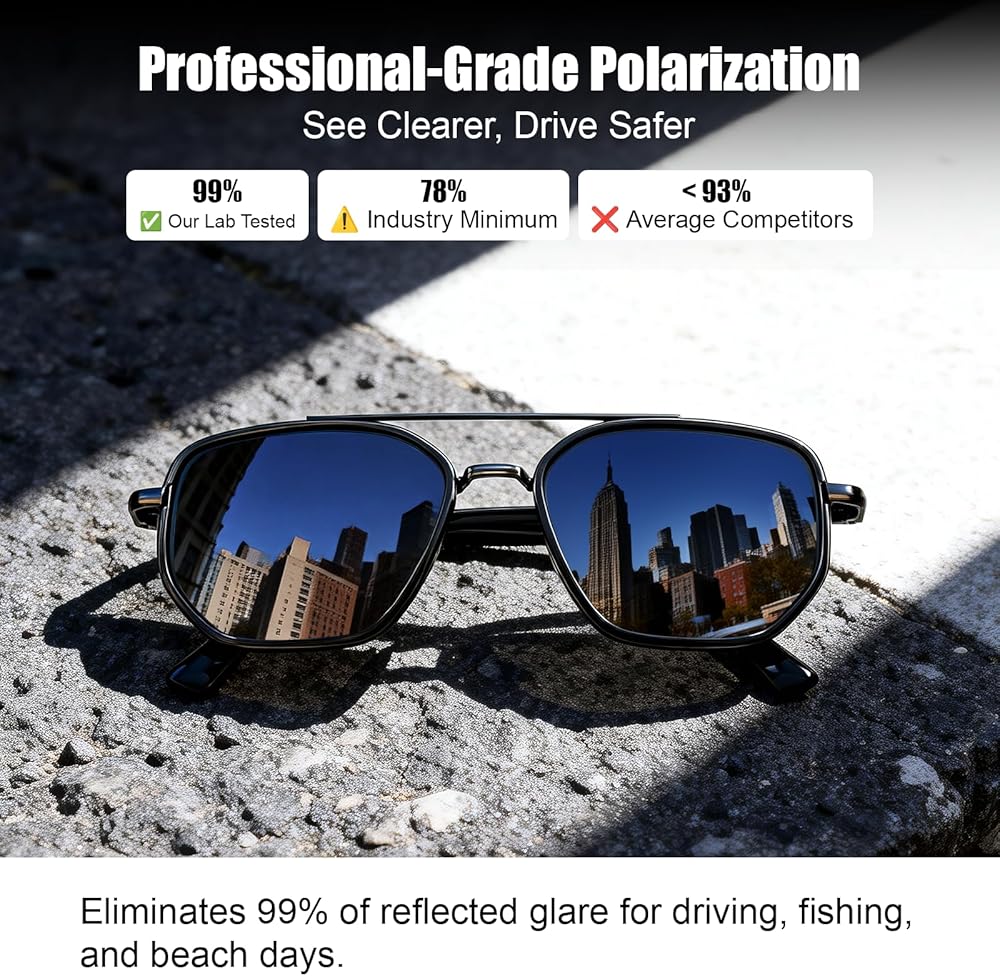 • TAC Polarized Lenses—See the Road, Not the Glare:Premium TAC polarized lenses reduce harsh reflections from windshields, water and pavement for clearer, more comfortable vision while driving, fishing or commuting.