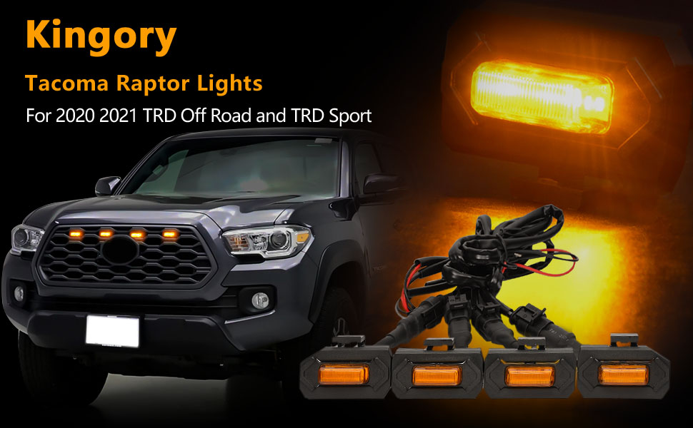 Kingory 4pcs Raptor LED Light Upgrade For 2020 2021 Tacoma OEM Grill,For 2022 Tacoma grille lights LED Grill Lights Compatible With TRD Off Road and Sport OEM Grille(Yellow Shell Amber Light)