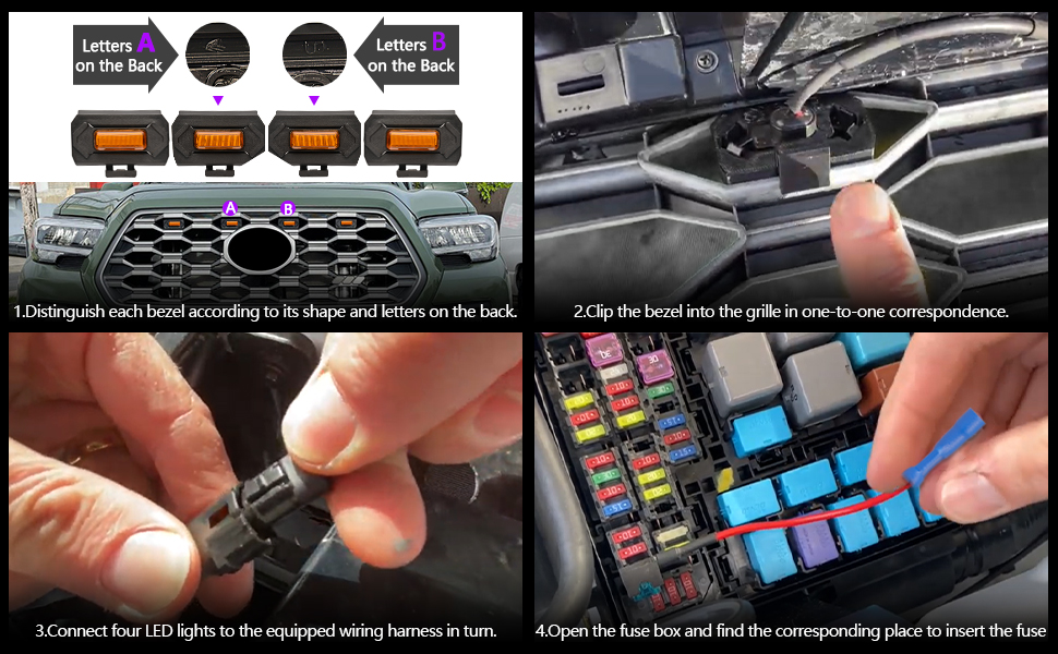 PACKAGE INCLUDED Installation Instructions + 4 LED Light Set + Wire Harness +Add a fuse .If your Tacoma fuse is a mini-blade fuse, you may need to buy another suitable fuse yourself.