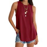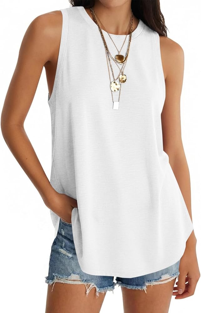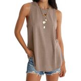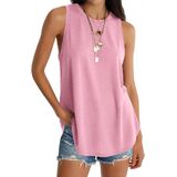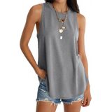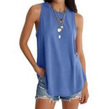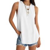 Features - Casual loose tank tops with crew neck,tunic length with curved hem design,solid color top,sleeveless,wide racerback.