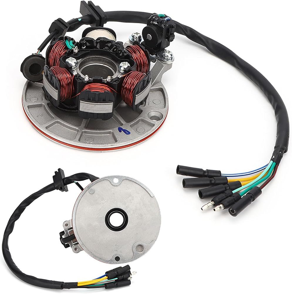 Compatibility: Stator back plate diameter is about 4.5in, center hole diameter: about 1.2in, coil diameter: about 3.3in, distance between mounting holes is about 4in, compatible with YX 140cc kick starter engine PIT PRO Trail dirt bike