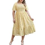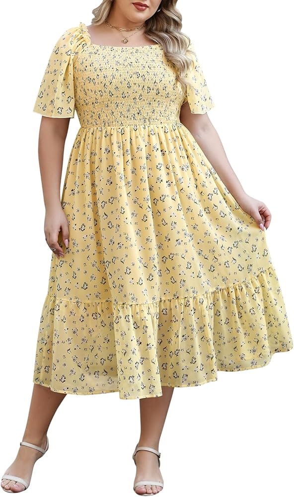 Elevate your style with this stunning midi dress that beautifully combines elegance and comfort. The soft chiffon fabric drapes gracefully, while the A-line silhouette flatters all body types. Featuring a square neck, smocked detailing, and charming flutter sleeves, this dress adds a touch of sophistication to your wardrobe. The empire waist enhances your figure, making you feel confident and beautiful. Perfect for any occasion, this dress is a must-have addition to your collection.