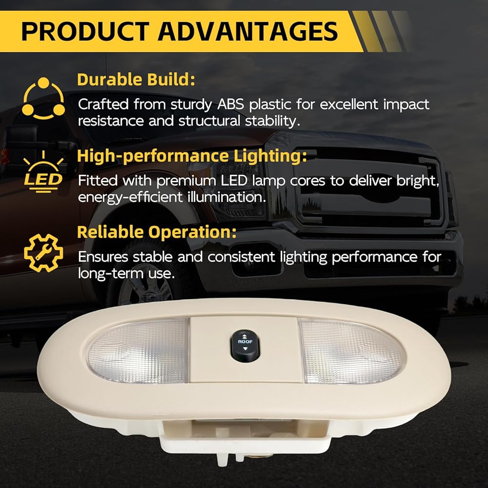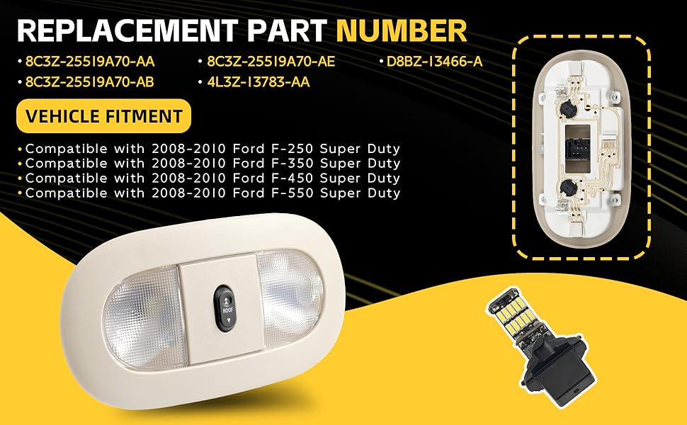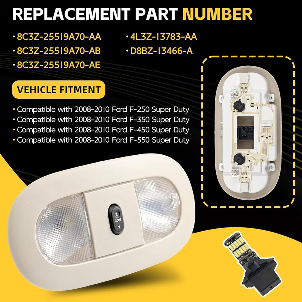 Fitment: This overhead console(Beige) is compatible with the 2008-2010 Ford F-250, F-350, F-450, F-550 Super Duty. Before purchasing, please carefully verify if our product is compatible with your vehicle model.If your previous overhead console also had only a single sunroof control button in the center, our product will be a perfect fit.