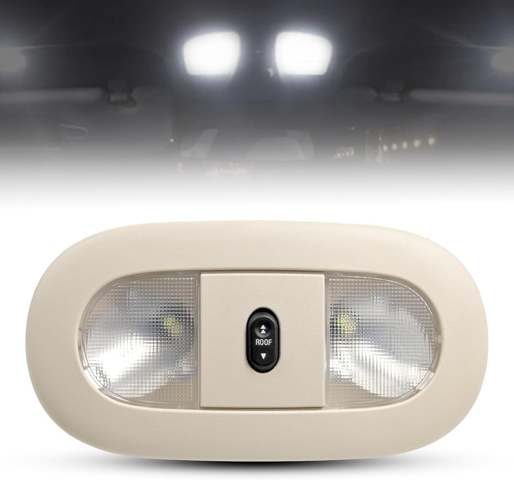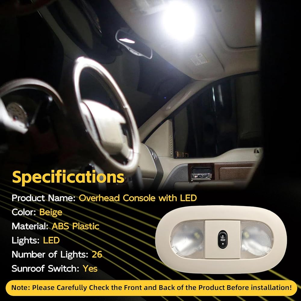 LED Overhead Console (Beige) with Dome Map Light & Sunroof Switch Fit for 2008-2010 Ford F250 F350 F450 F550 Super Duty Ceiling Headliner Lamp Replace# 8C3Z-25519A70-AA 4L3Z-13783-AA
