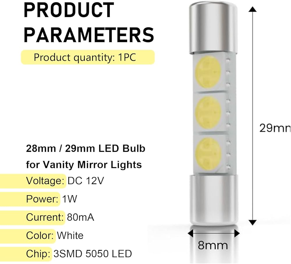 Versatile Applications: Suitable as sun visor vanity mirror lights, roof lights, door lights and trunk lights, meeting multiple interior lighting needs.