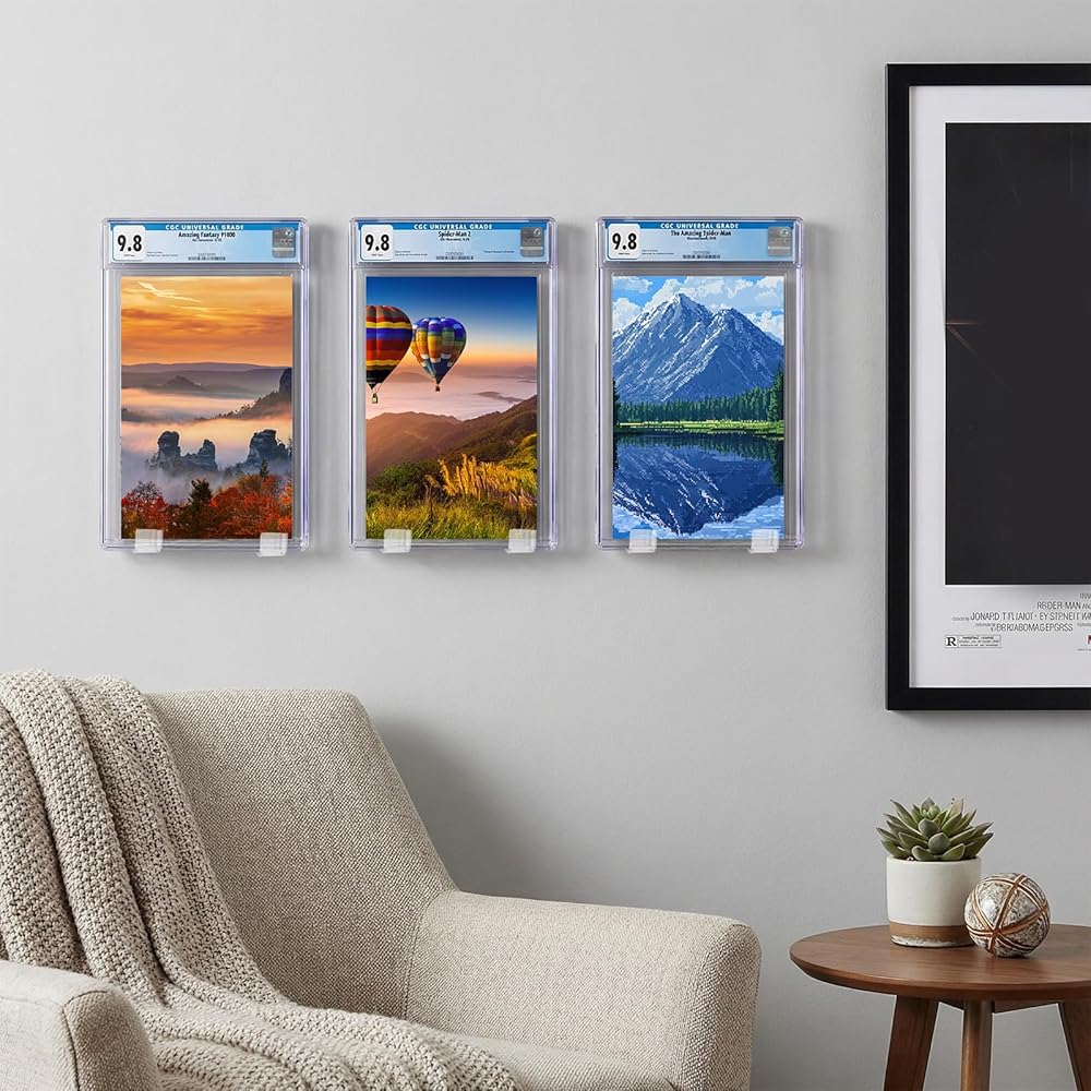 Premium Materials: Made of durable, clear acrylic, these comic book frames for wall subtly showcase your collection, making your comic books, vinyl records, or trading cards shine.