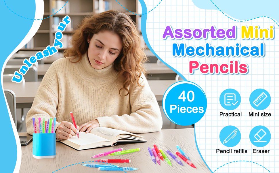 40 PCS Mini Mechanical Pencils Automatic Pencils 0.7mm with Erasers Mini Pencil Stationery Home Office School Supplies for Writing, Drawing, Sketching, Drafting