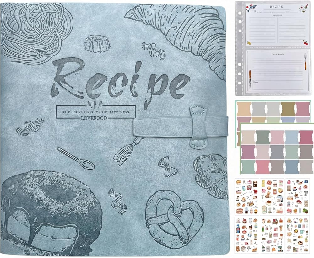 Stop searching for scattered recipes. This blank recipe book set includes everything you need: premium leather binder,