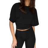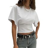 Cinched Waist Crop Tops for Women Dolman Sleeve Cinch Waist Batwing Top Cropped Tee Loose Bubble Shirt Going Out